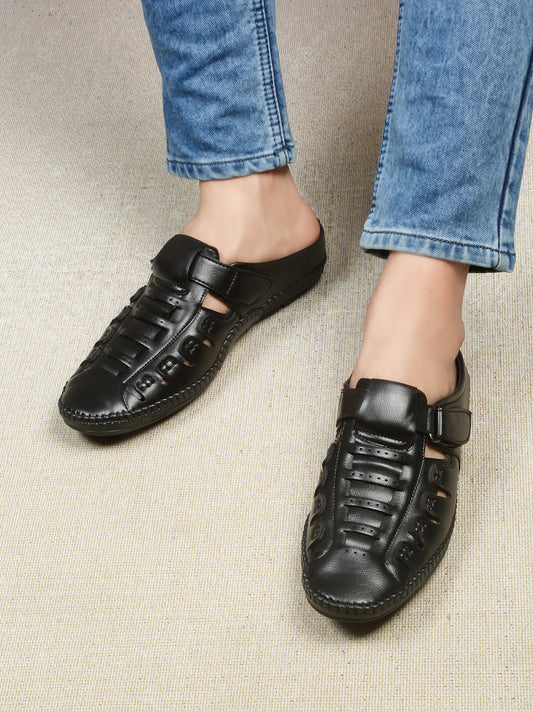 Kosher Black Bantu Roman Faux Leather Men's Casual Sandal