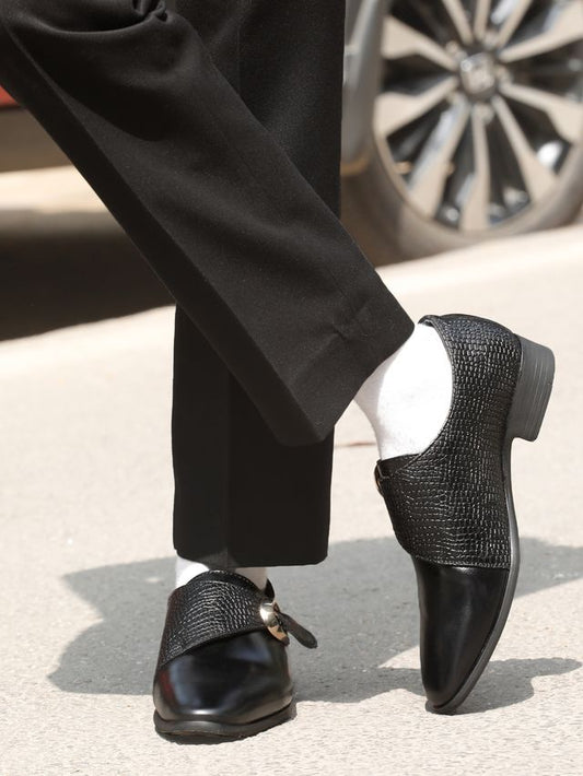 Kosher Black Color Genuine Leather Slip-On Comfort Shoes for Men