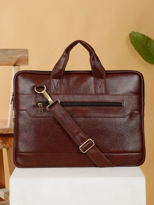 KOSHER Professional Brown Faux Leather Laptop Messenger Bag for Men / Women