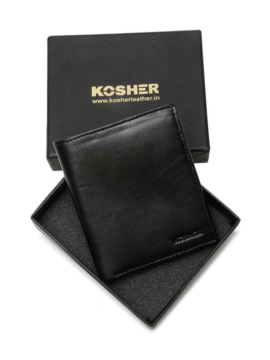 KOSHER Black Color Premium Men's Classic Leather Wallet With Coin Pocket and Rear Card Slots