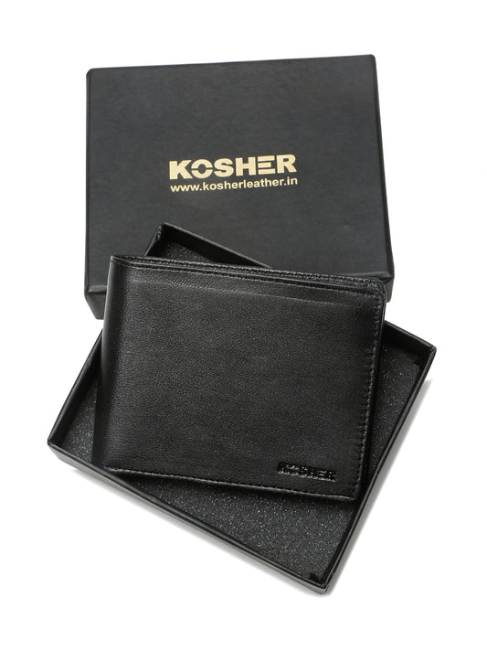 KOSHER Black Color Men,s Classic Bi-Fold Premium Leather Wallet with Coin Pocket & Rear Slip Pocket For Card Slots