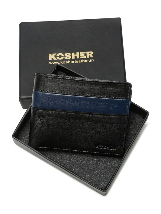 Kosher Premium Black Leather Wallet for Men – Stylish & Durable with Multi-Stripe Design