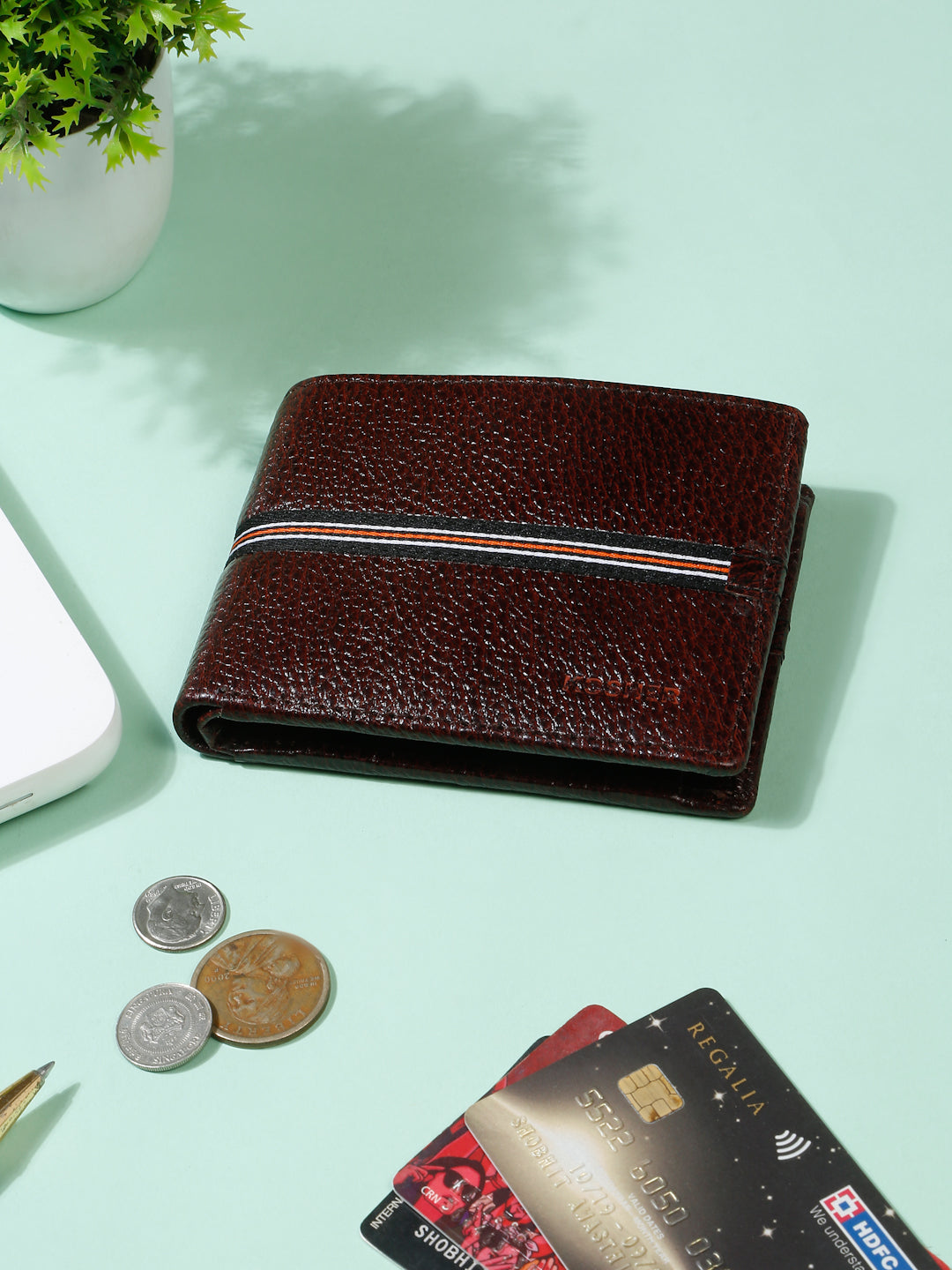 Kosher Premium Brown Leather Wallet for Men – Stylish & Durable with Multi-Stripe Design