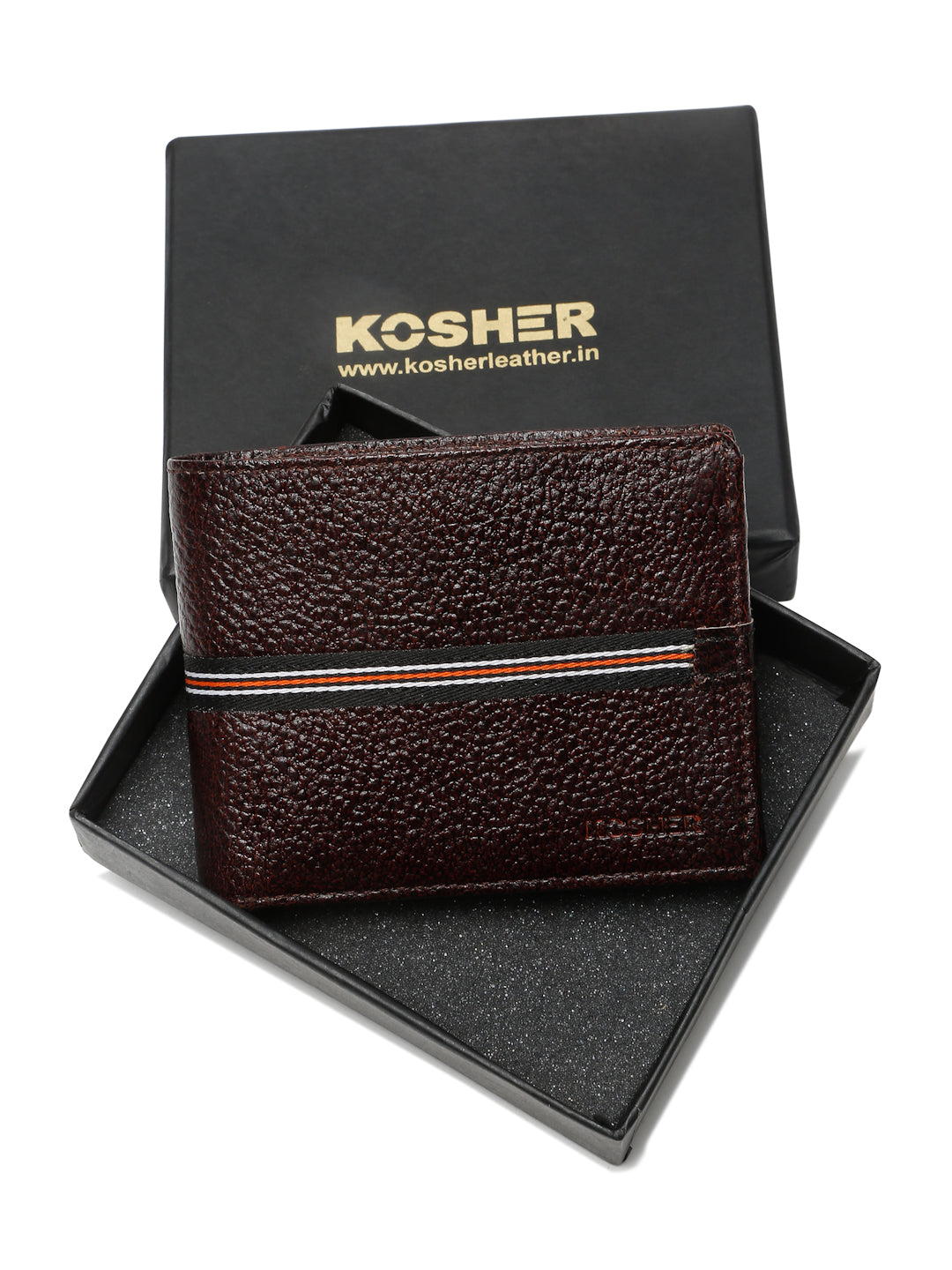 Kosher Premium D.Brown Leather Wallet for Men – Stylish & Durable with Multi-Stripe Design